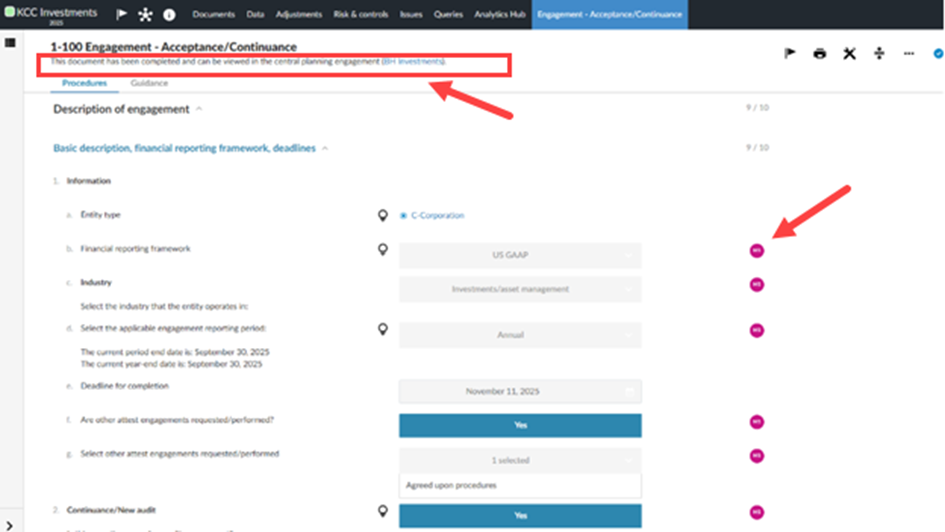 Note: This feature is enabled automatically in the Caseware Cloud application and applies to both new and existing engagements.