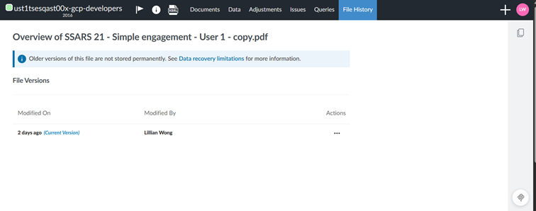 For more information about document management options, refer to Manage the engagement documents.