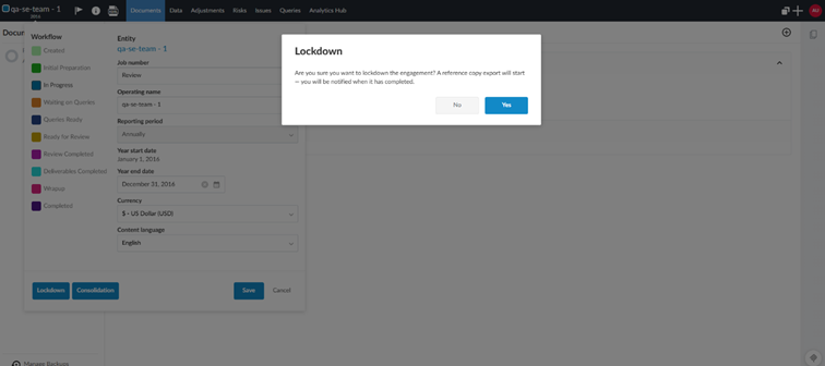 When you manually lock down an engagement, Caseware Cloud will automatically download the reference copy for you. This makes the lockdown workflow more consistent and reduces the chance that lockdown completes without producing the reference copy of the engagement. You will receive the same notifications that you would see when manually downloading the copy.