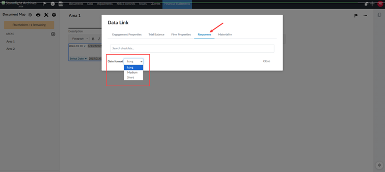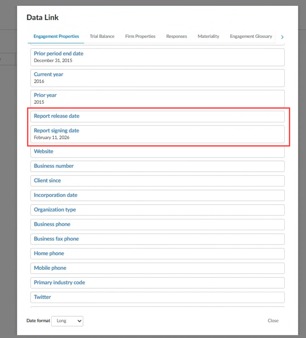 This ensures consistent date formatting across templates, financial statements, letters, and other deliverables, while giving engagement teams greater control over presentation.