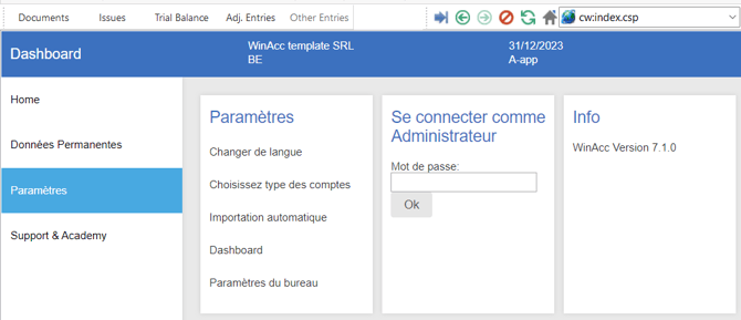 2. Allez au dossier dans WinAcc et ouvrez les "comptes annuels BNB" à partir du dashboard