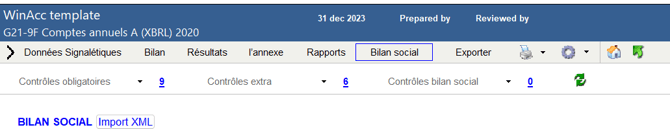 Dans le portail Partena le bilan social peut être téléchargé au format XML. WinAcc peut ensuite lire ce fichier directement dans les comptes annuels.