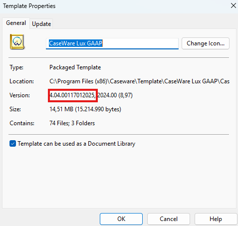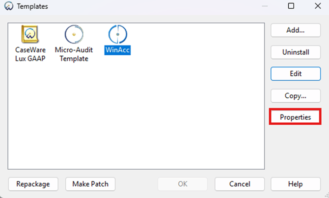 - Here you will find the currently installed Templates. Please select Caseware Lux GAAP and choose Properties