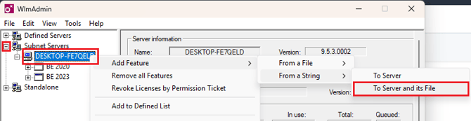 In License manager, expand Subnet server and right click on your server name