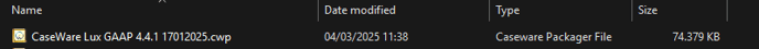 - Go to your Downloads Folder and execute Caseware Lux GAAP x.x.x.cwp, which you installed in the previous step