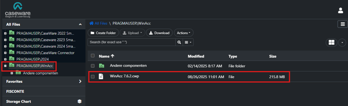 - Download de installatie file voor de nieuwste versie van WinAcc, dit zal de enigste file zijn die beschikbaar is in deze folder