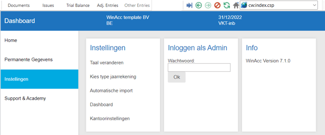 2. Ga in WinAcc naar het juiste dossier en open de ‘jaarrekening NBB’ vanuit het dashboard