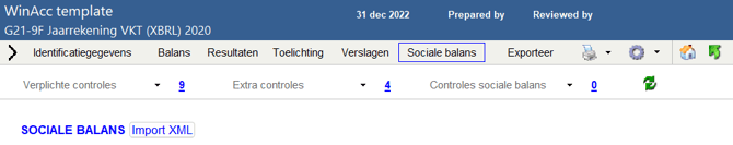 3. Klik op sociale balans en vervolgens op Import XML: