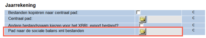3. Scrol door naar het hoofdstuk ‘jaarrekening’ en selecteer het juiste pad (pad naar de sociale balans xml bestanden)